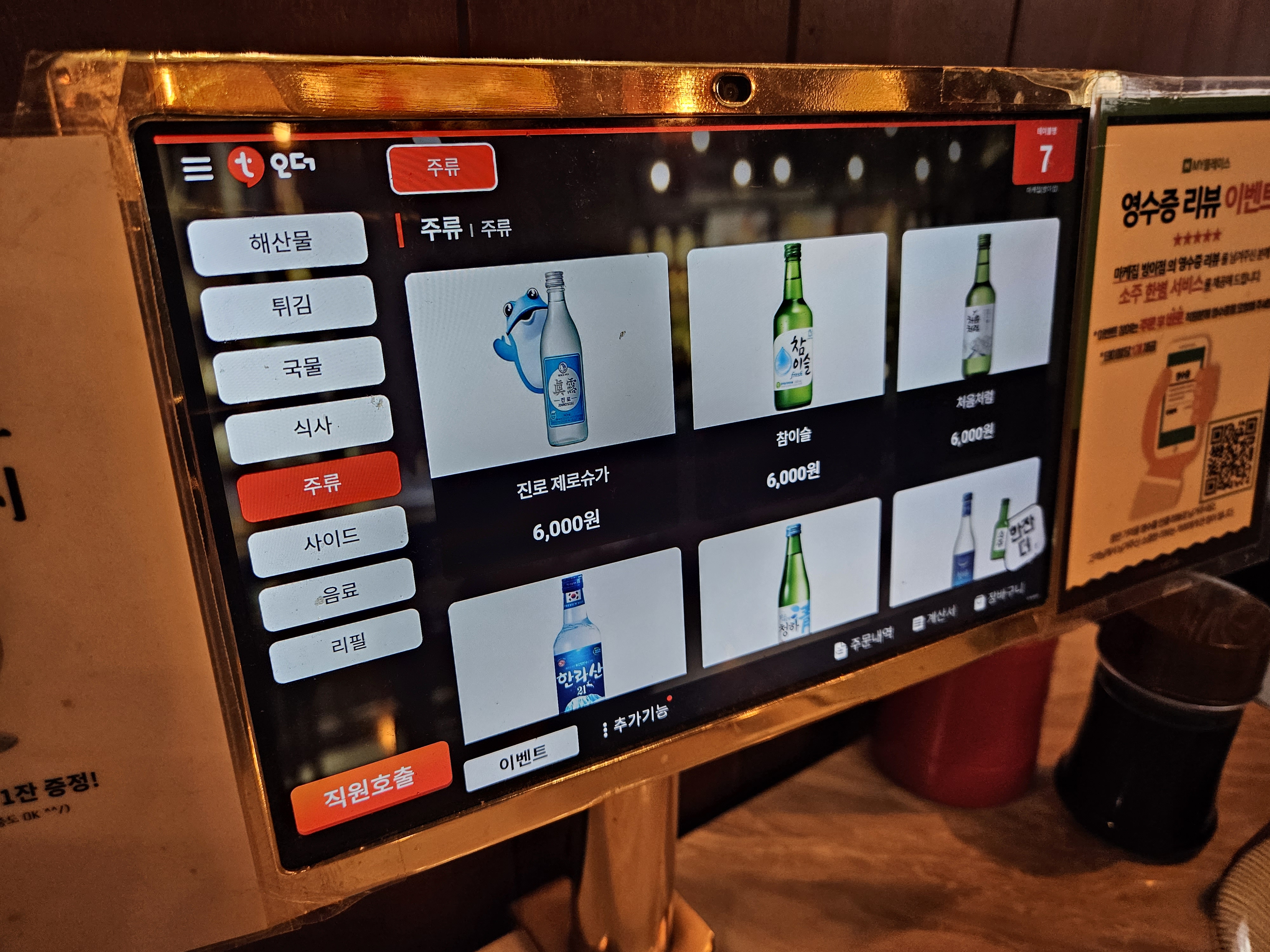 소주 추가주문 등도 더 간편하게 주문이 가능합니다.