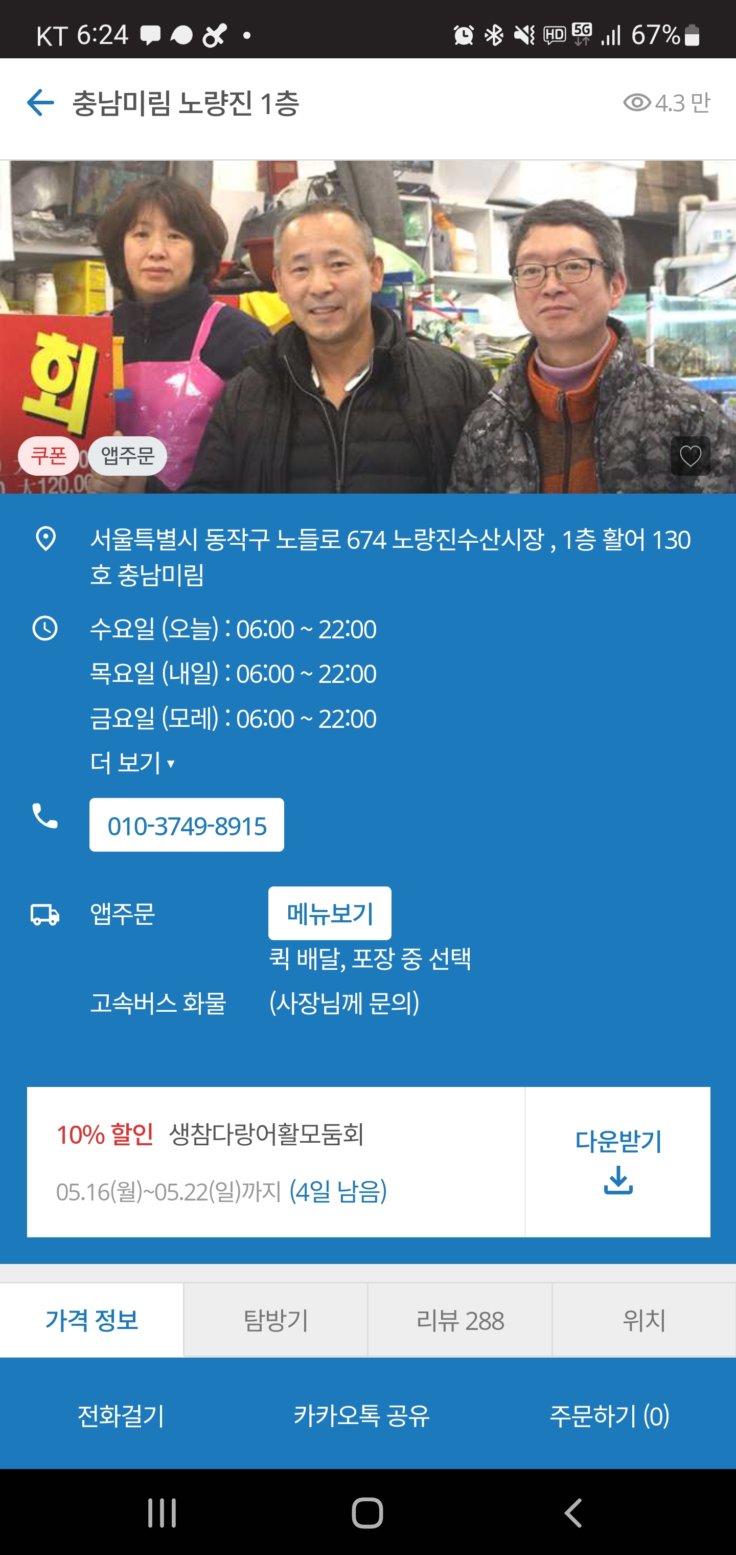 쿠폰을 걸어놓으셨었고 후기도 좋았기 때문이고