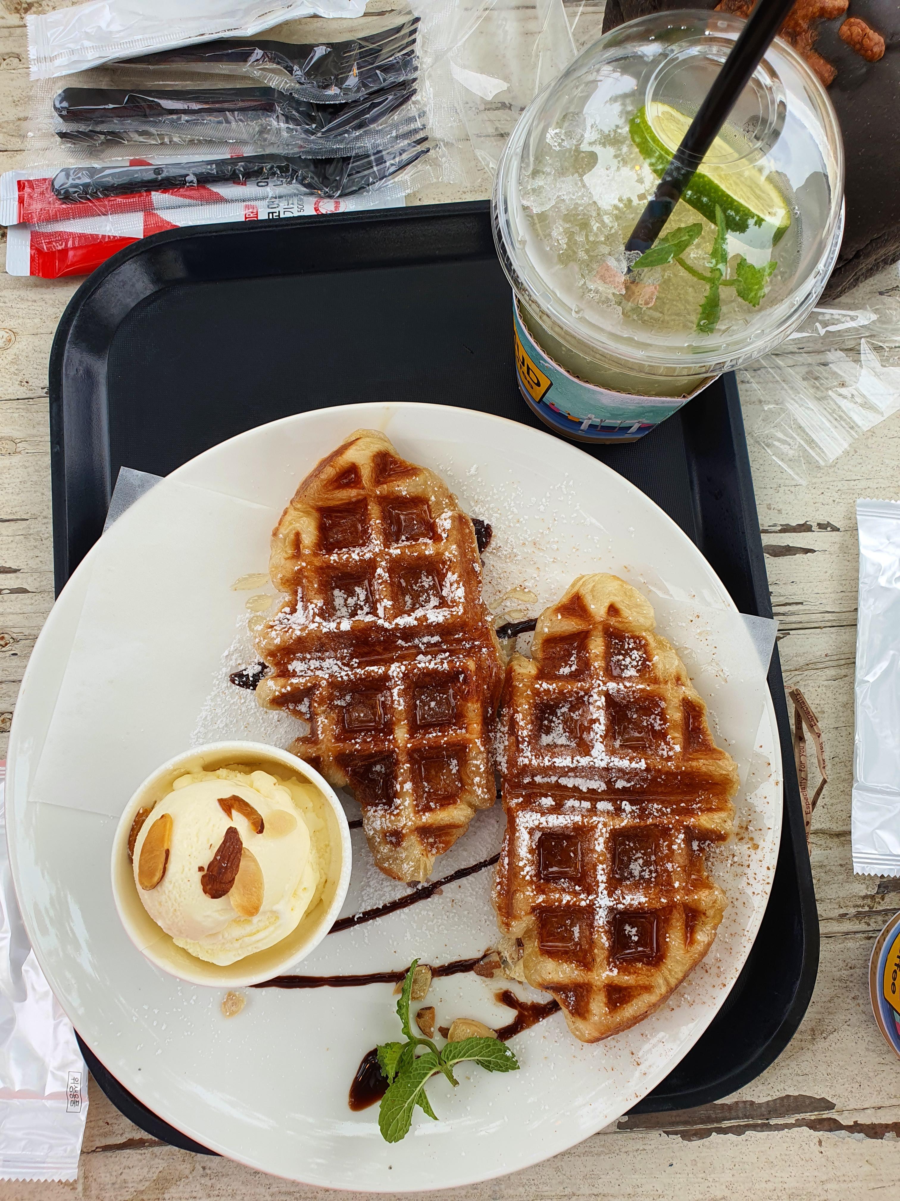 크로플도 아이스크림 얹어 먹으니 순삭.