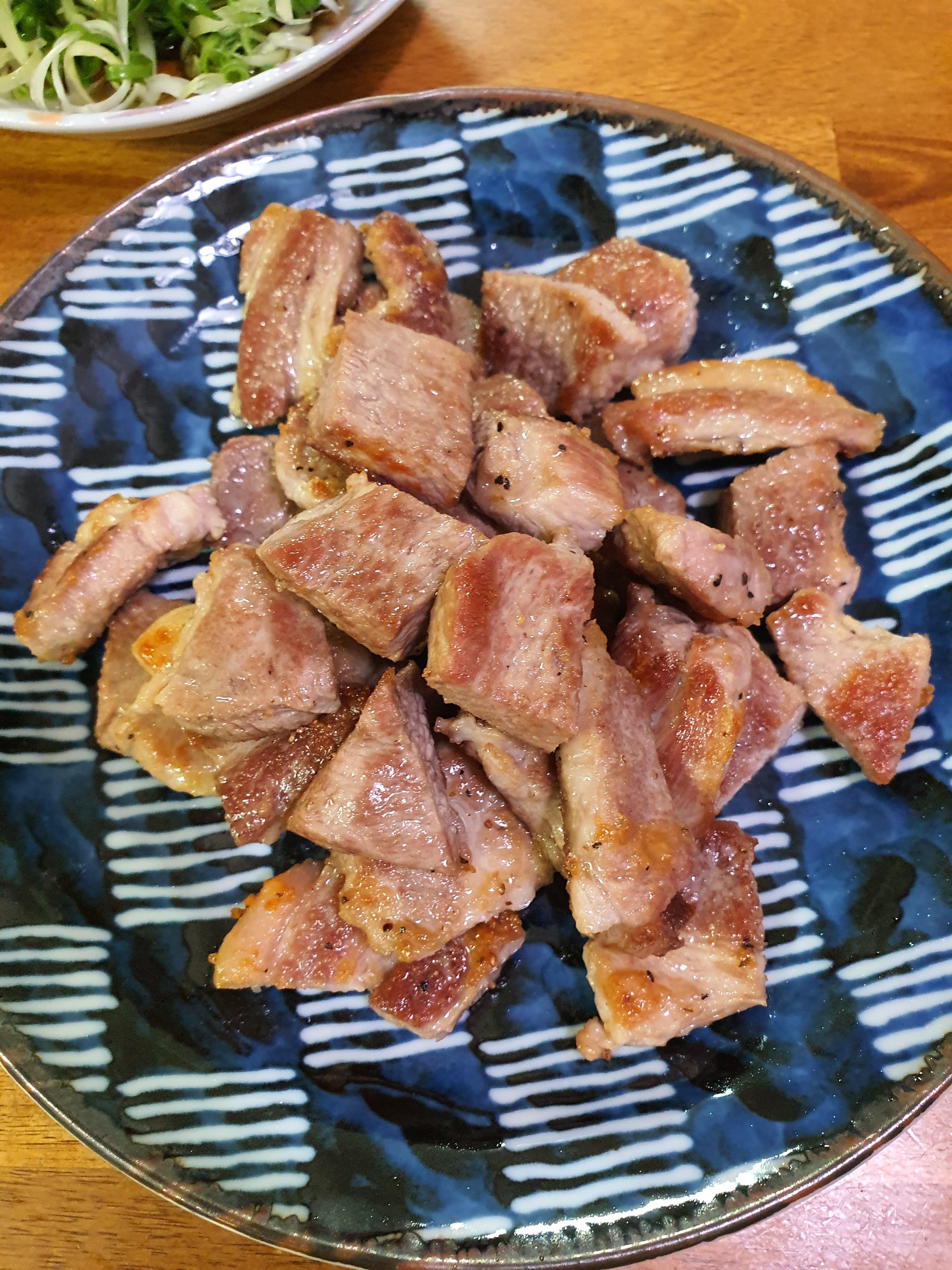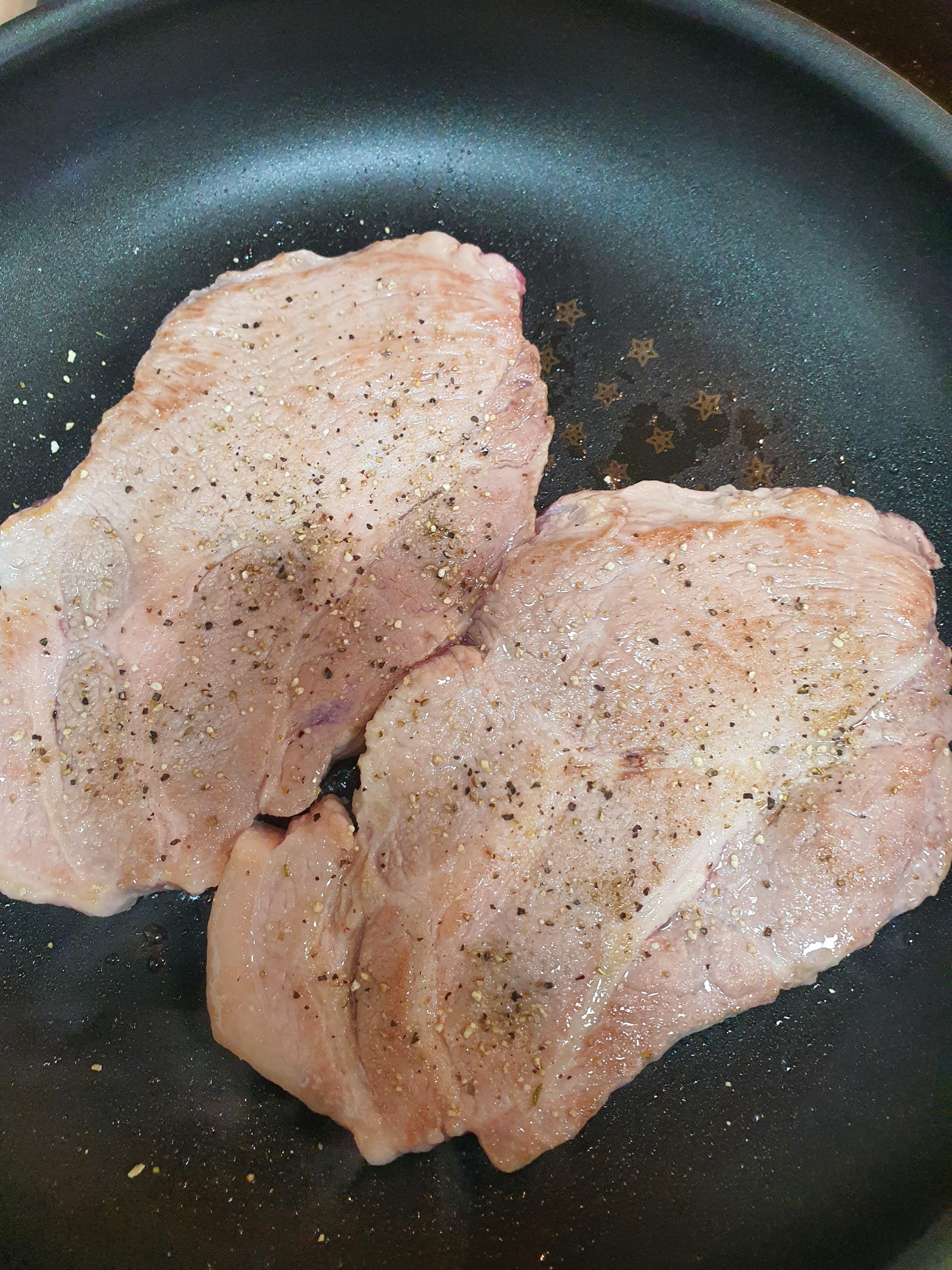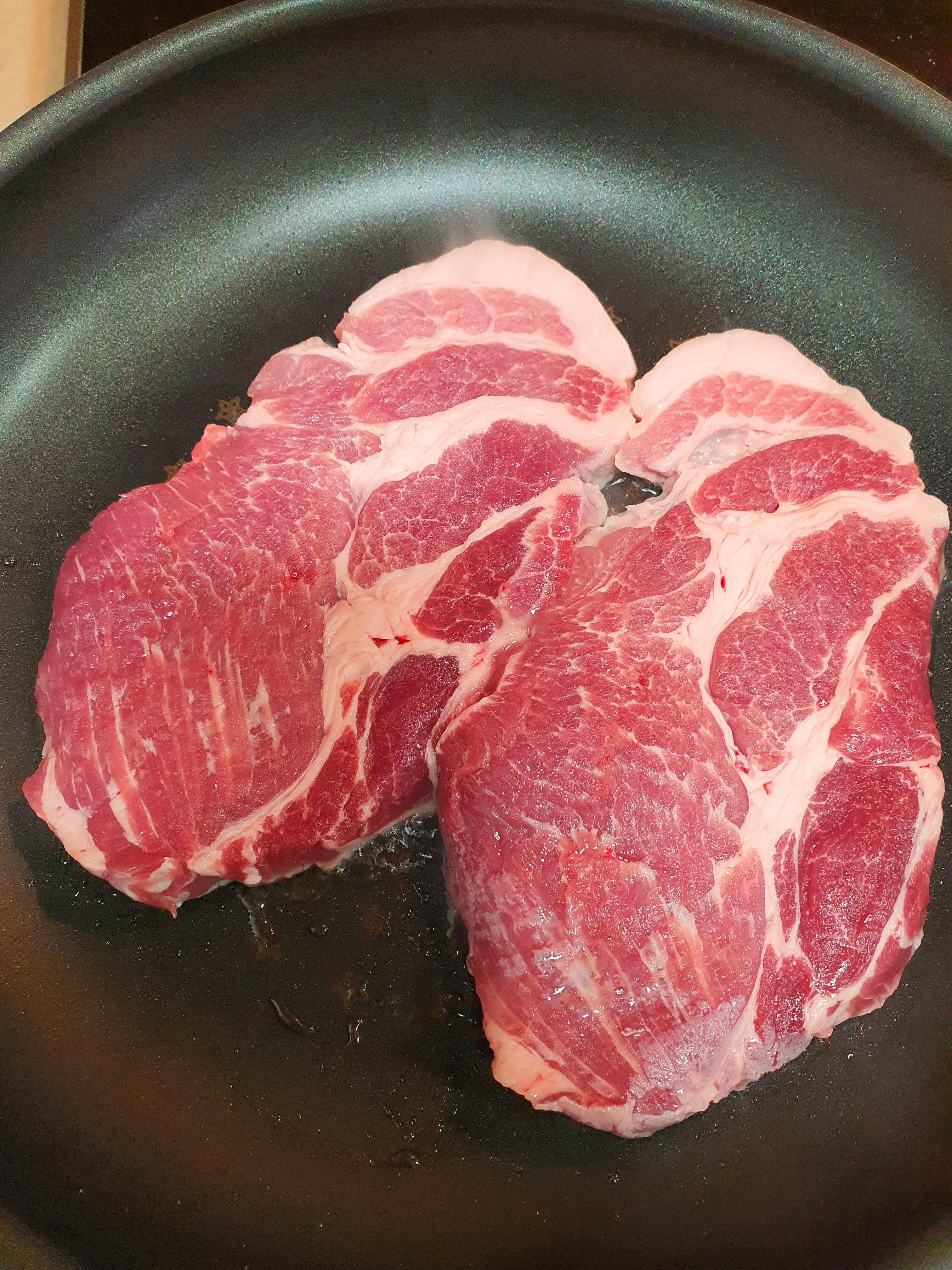 약간 미디움 웰던보다는 살짝 더 구워줍니다. 돼지고기라.