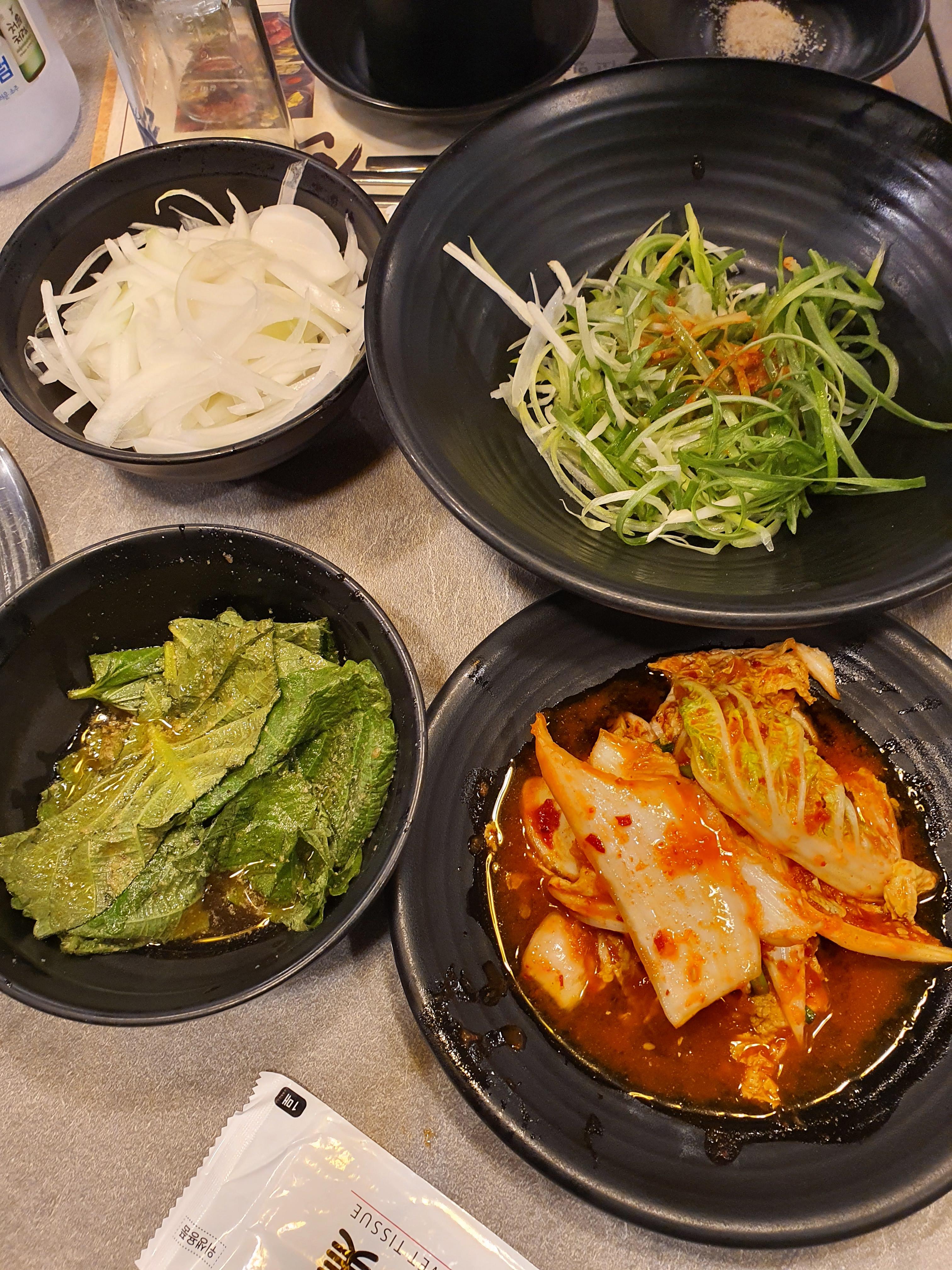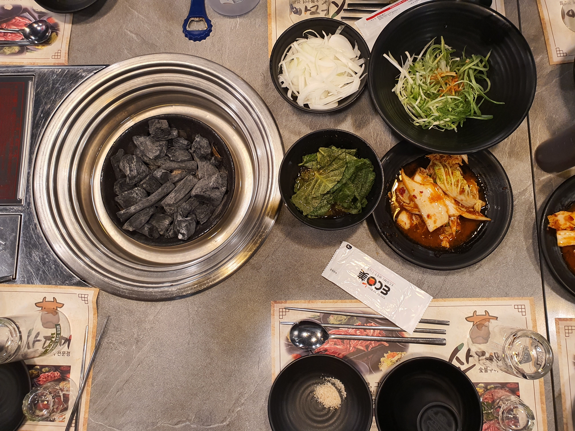 숯불과 기본찬 세팅입니다.