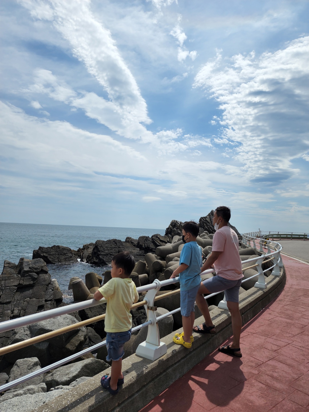 바다를 바라보고 있는 삼부자의 모습.
