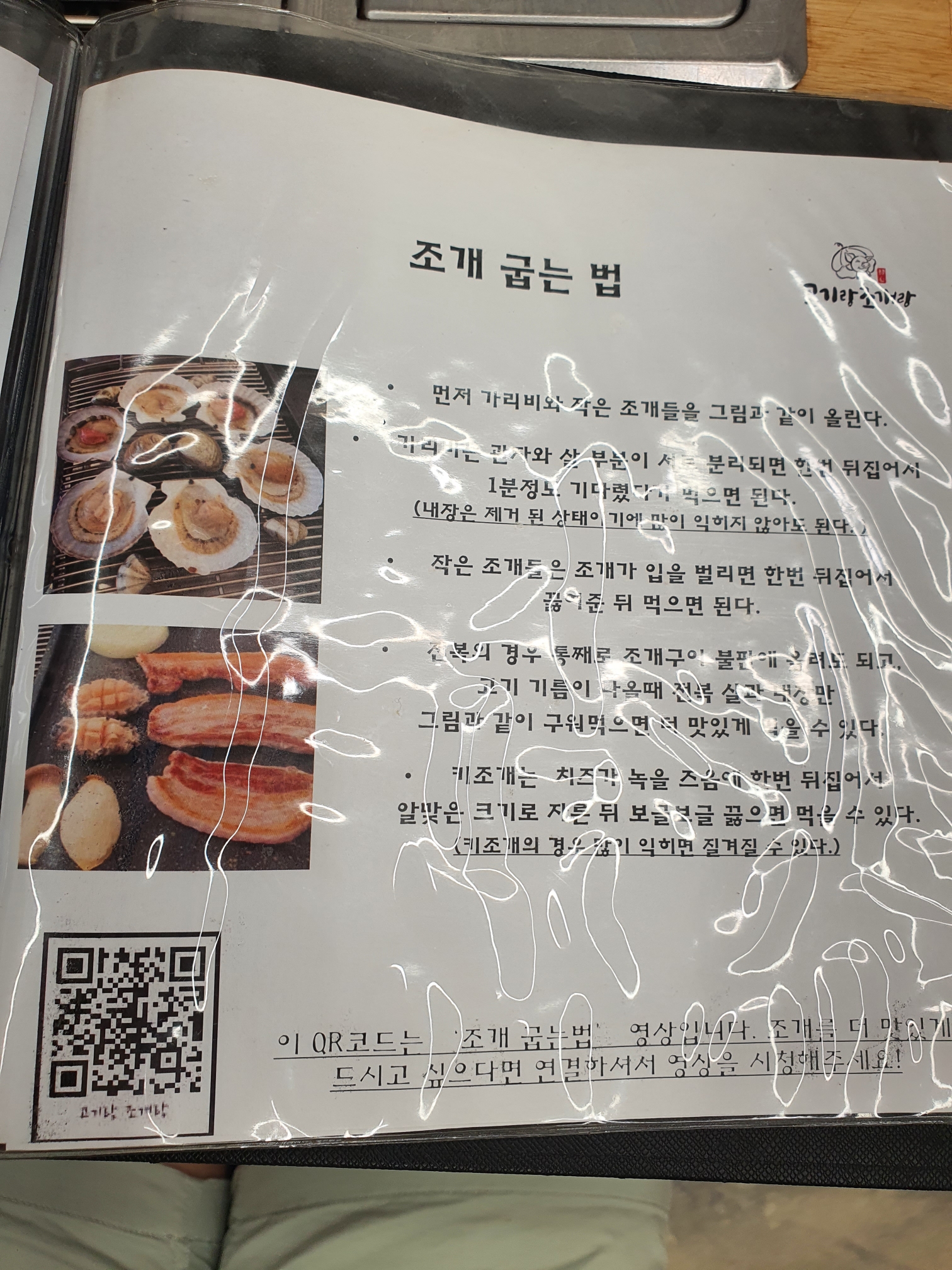 조개랑 고기 굽는 법은 구두로 다 설명을 해주십니다.