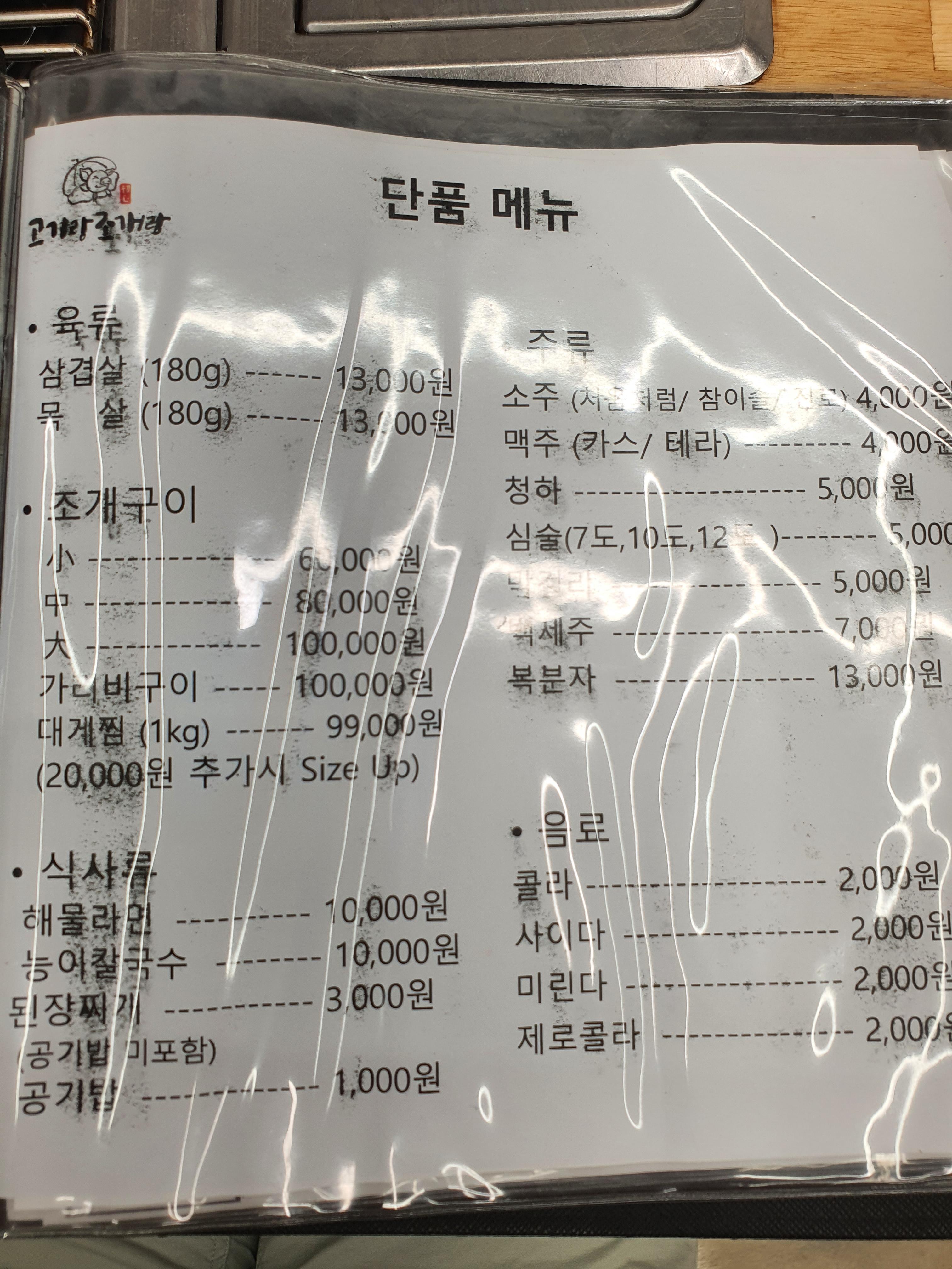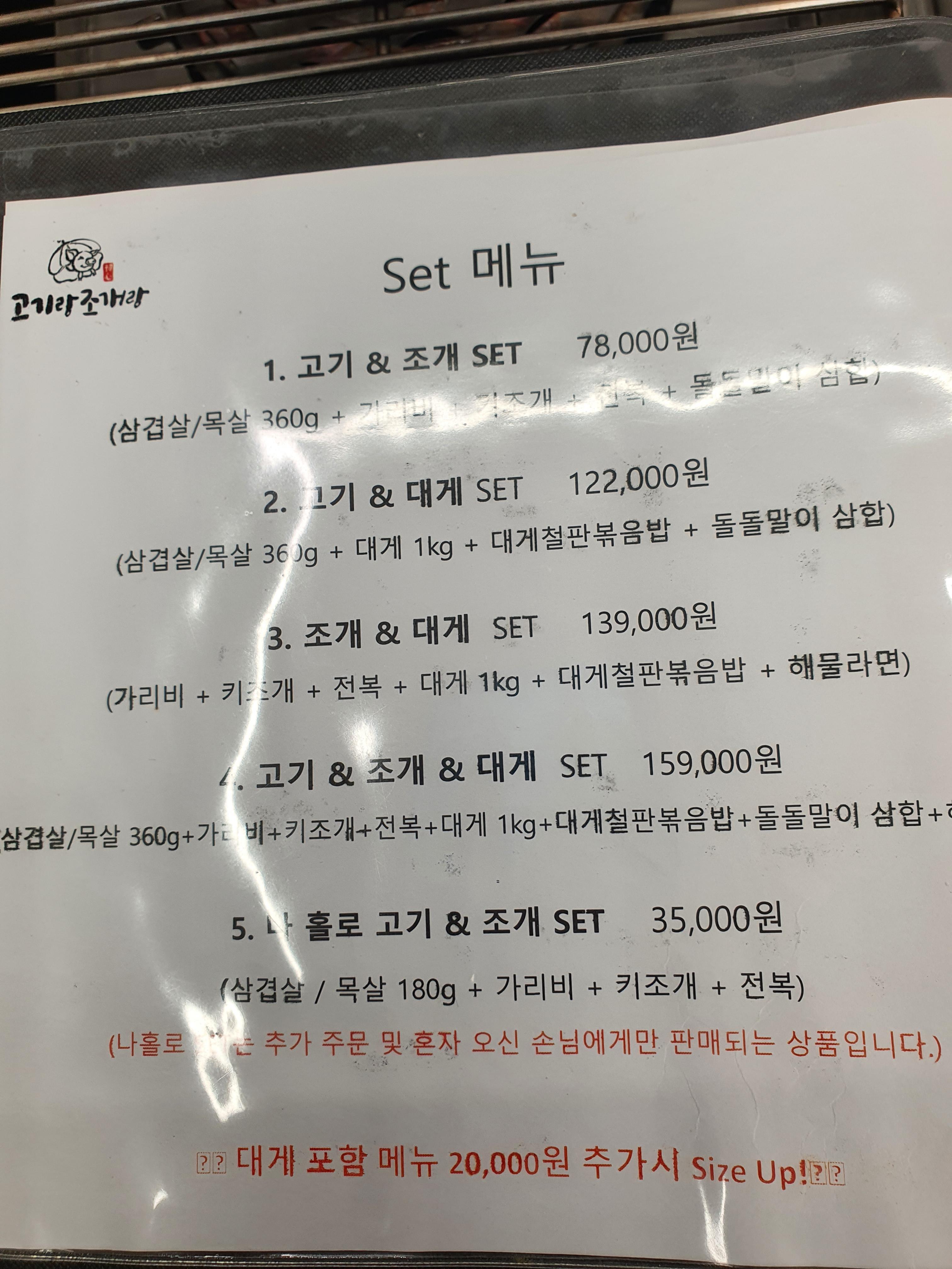 다음에 온다면 저희도 고기랑 조개세트만 먹으러