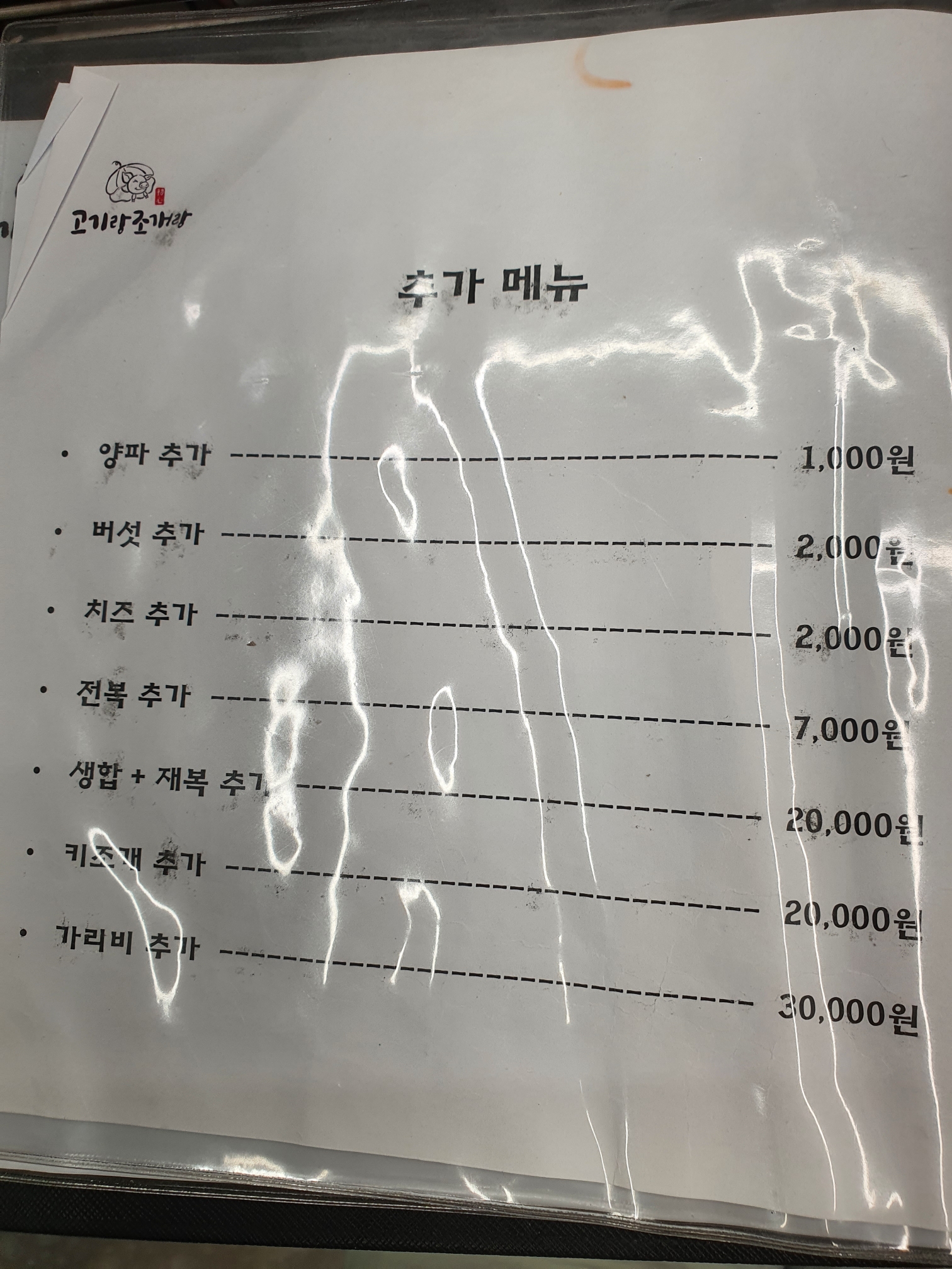 추가 메뉴는 아마도 아무도 안시킬듯?