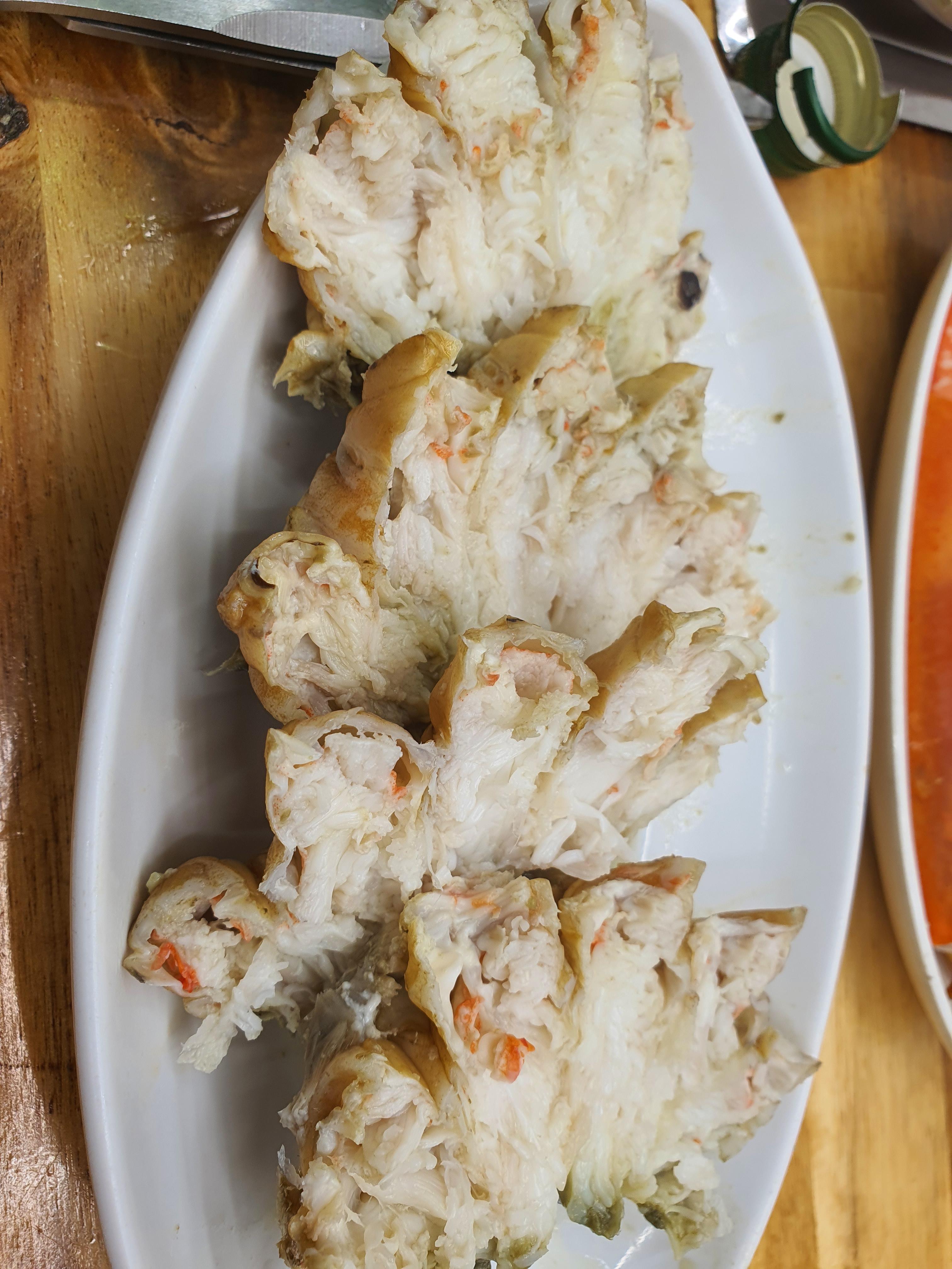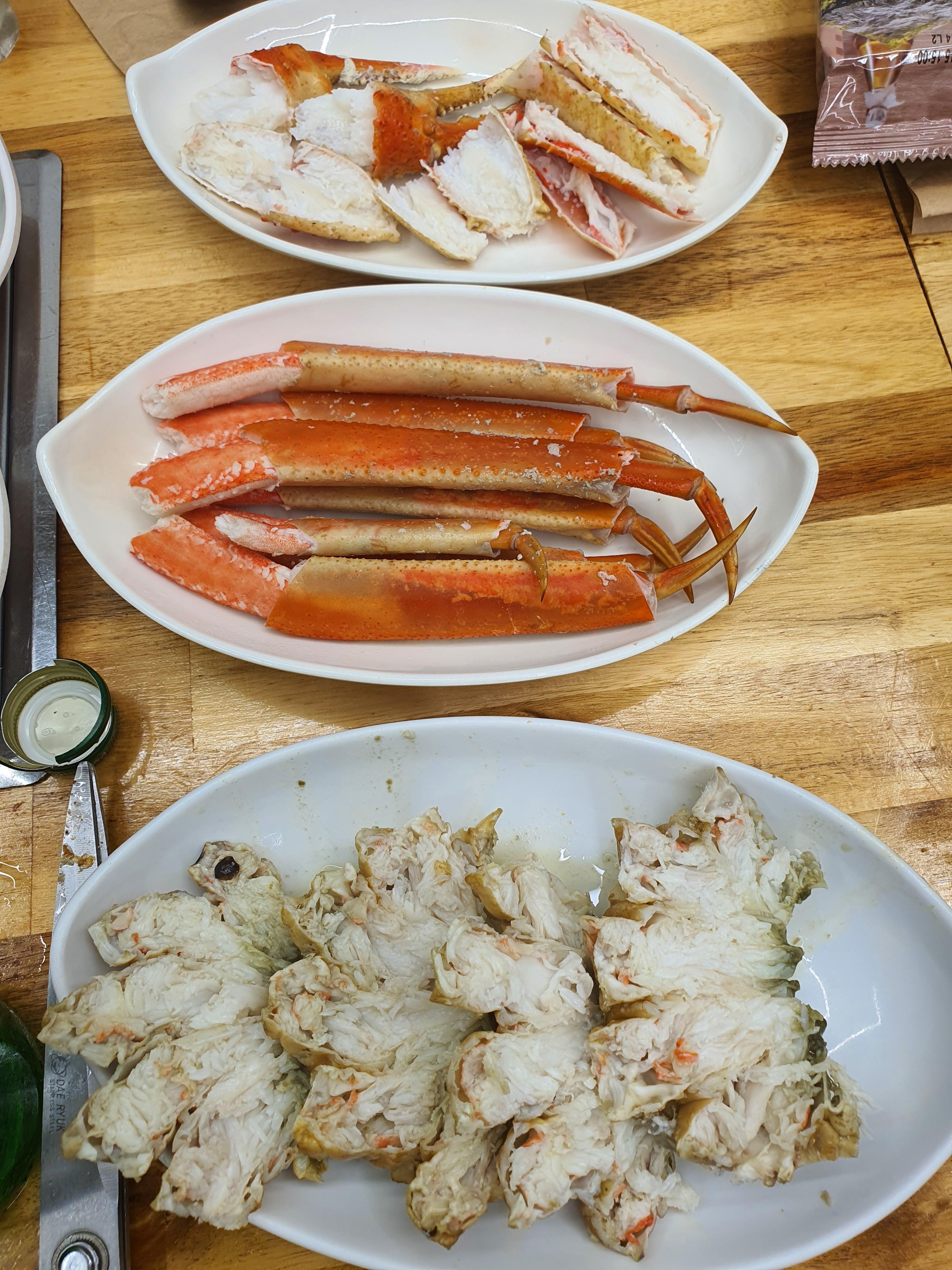 몸통, 다리, 집게로 먹기 쉽게 분리가 되어 왔습니다.