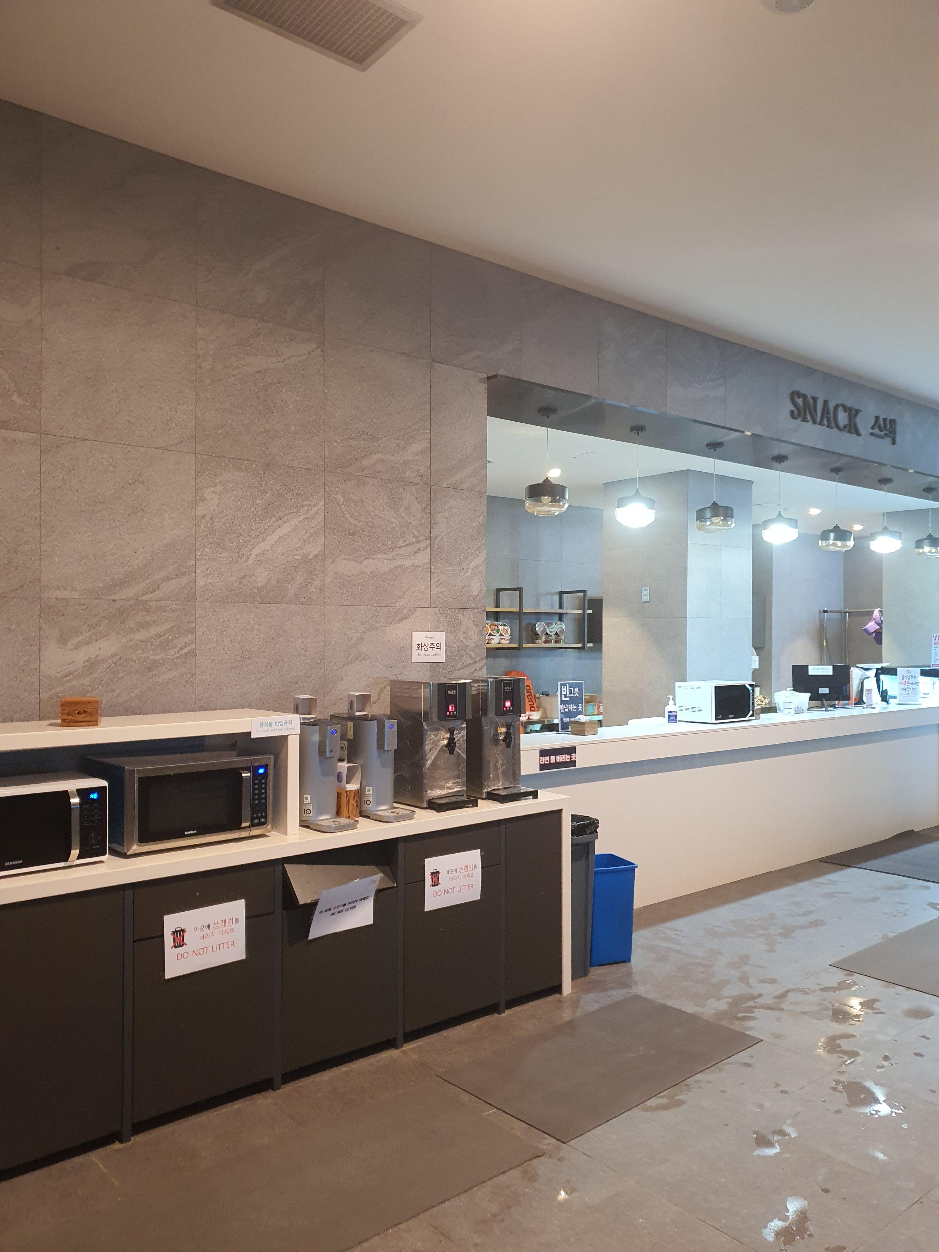정수기, 전자레인지, 뜨거운 물도 구비되어 있습니다.