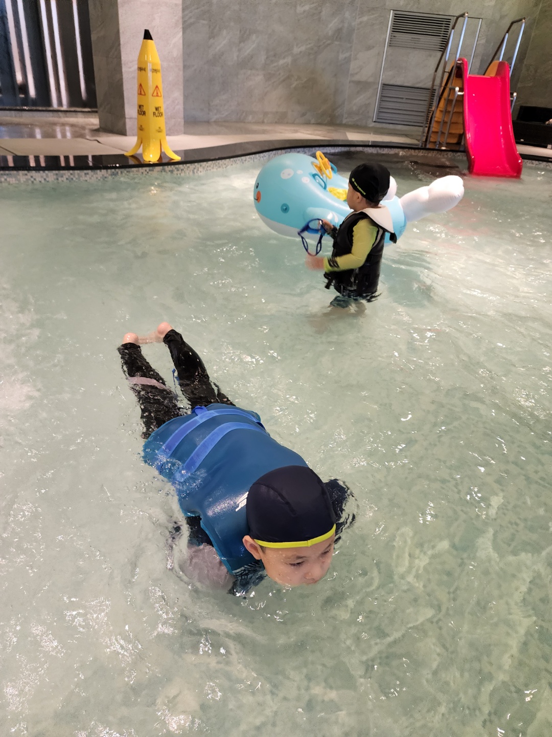 수영장이 넓지는 않아서 어차피 튜브를 큰걸 가져올수가 없으니