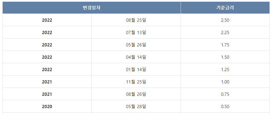그럼 최근 기준금리는 어떻게 변했는지 찾아봤습니다.