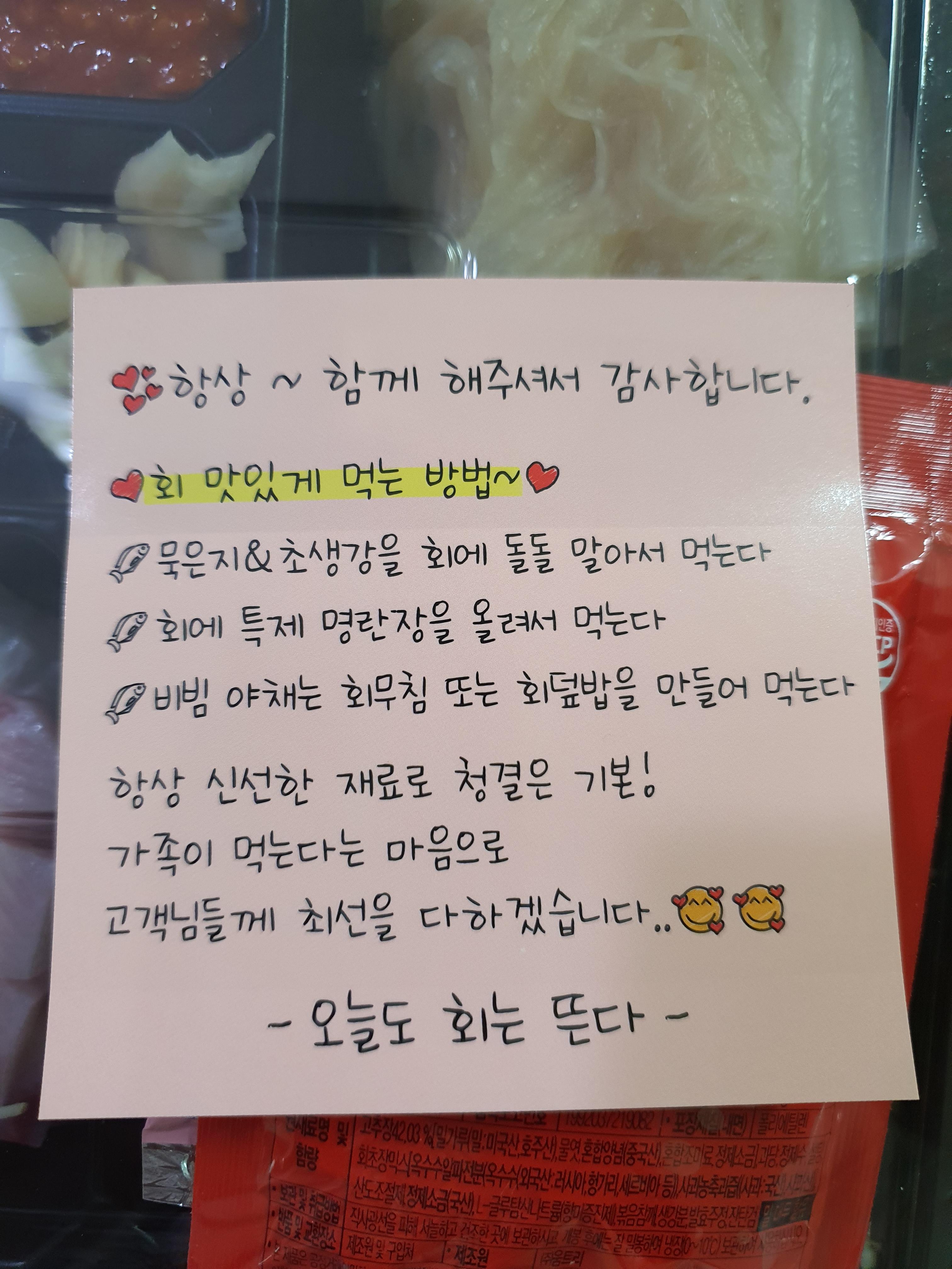 처음 주문해본 오늘도 회는 뜬다. (작명센스 굿~)