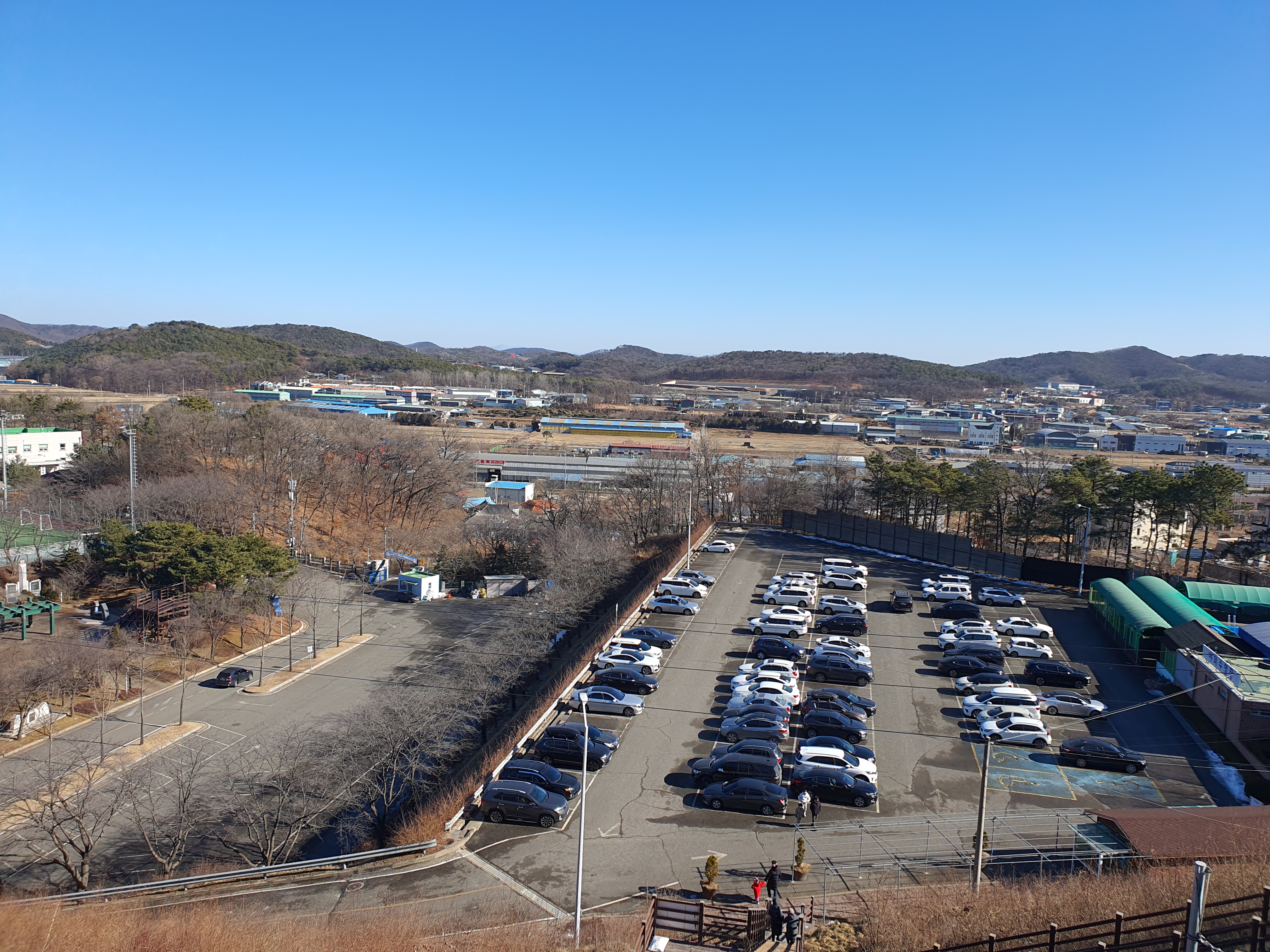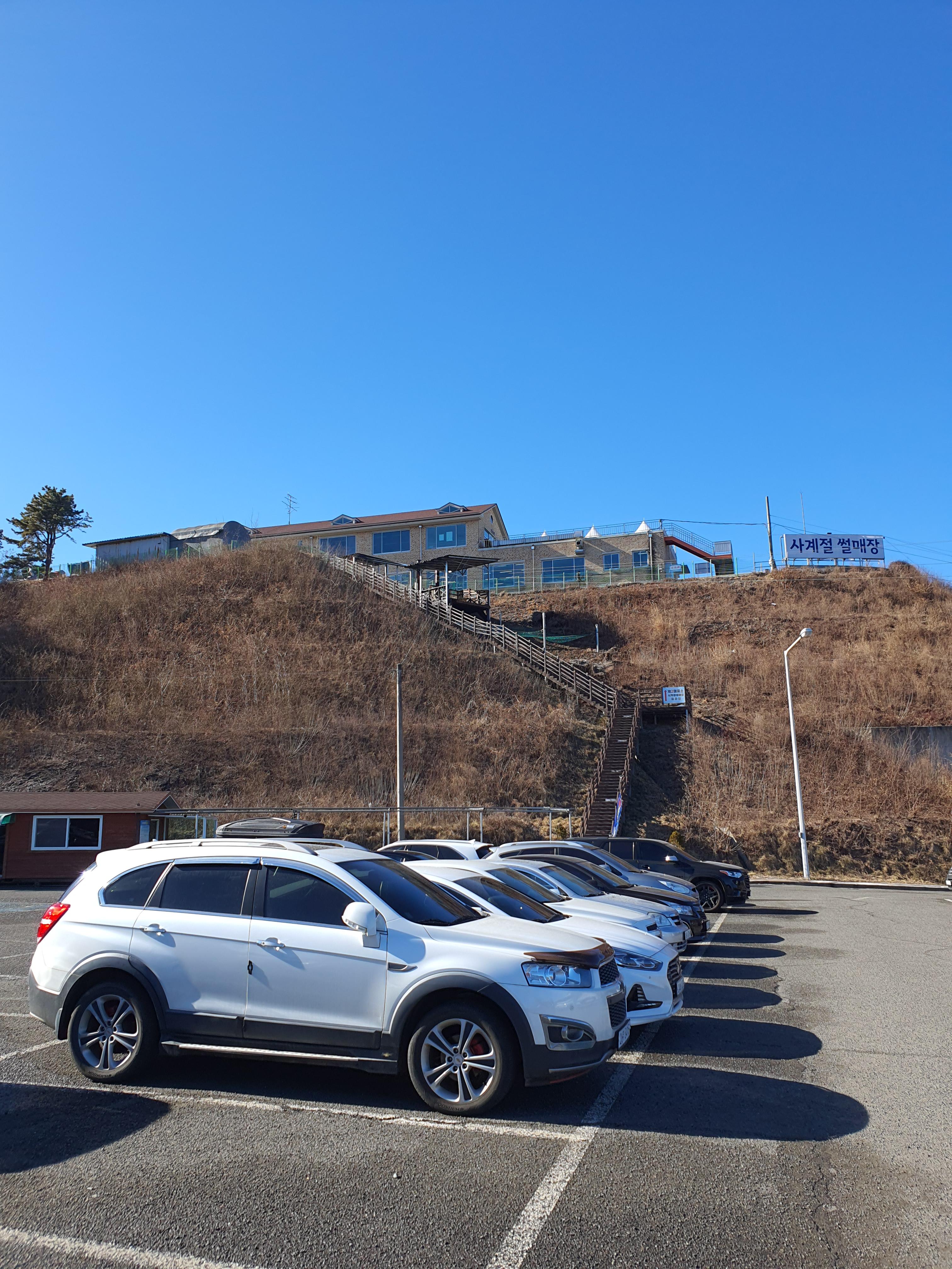 계단을 올라 주차장을 바라본 모습입니다.