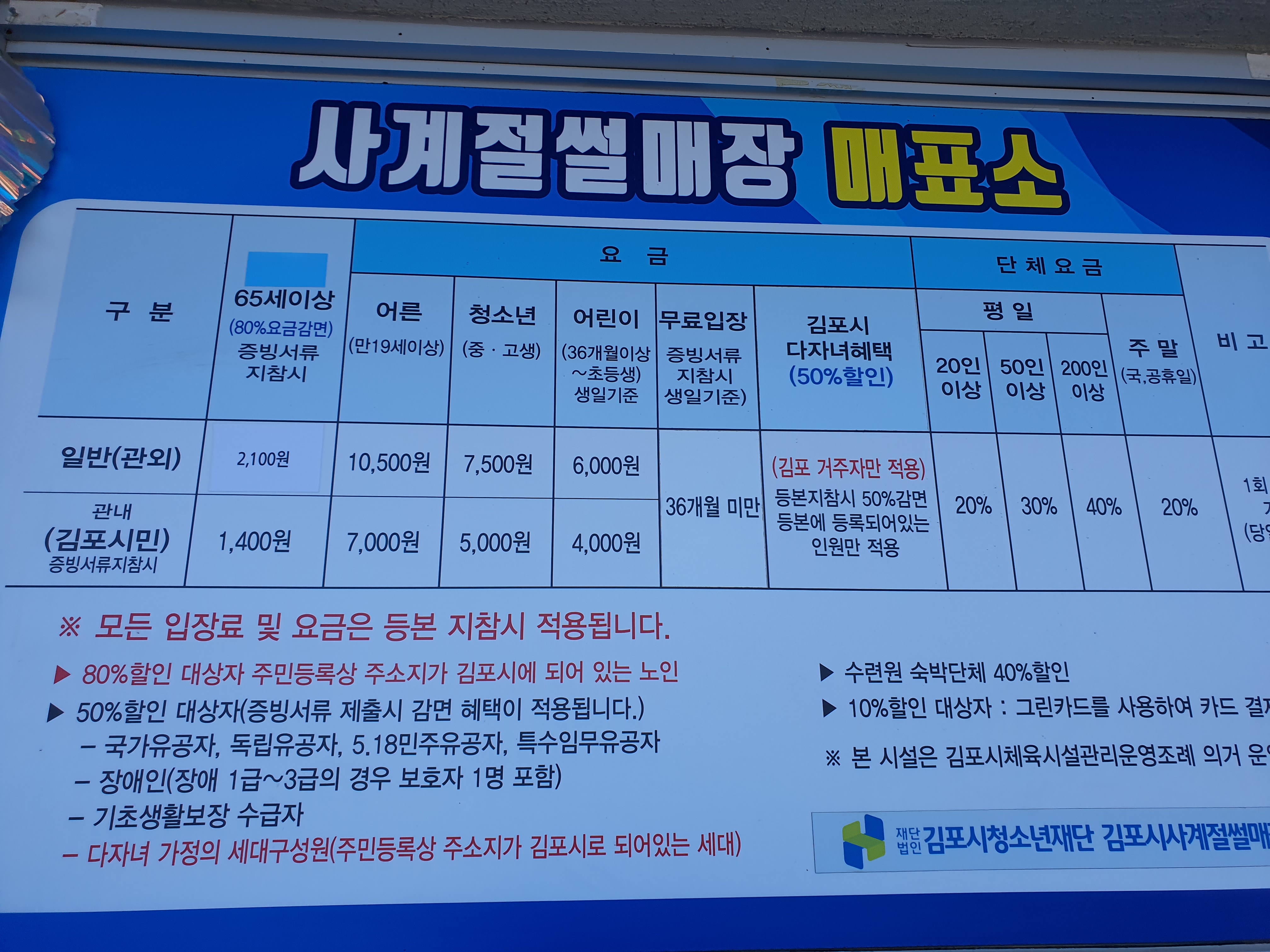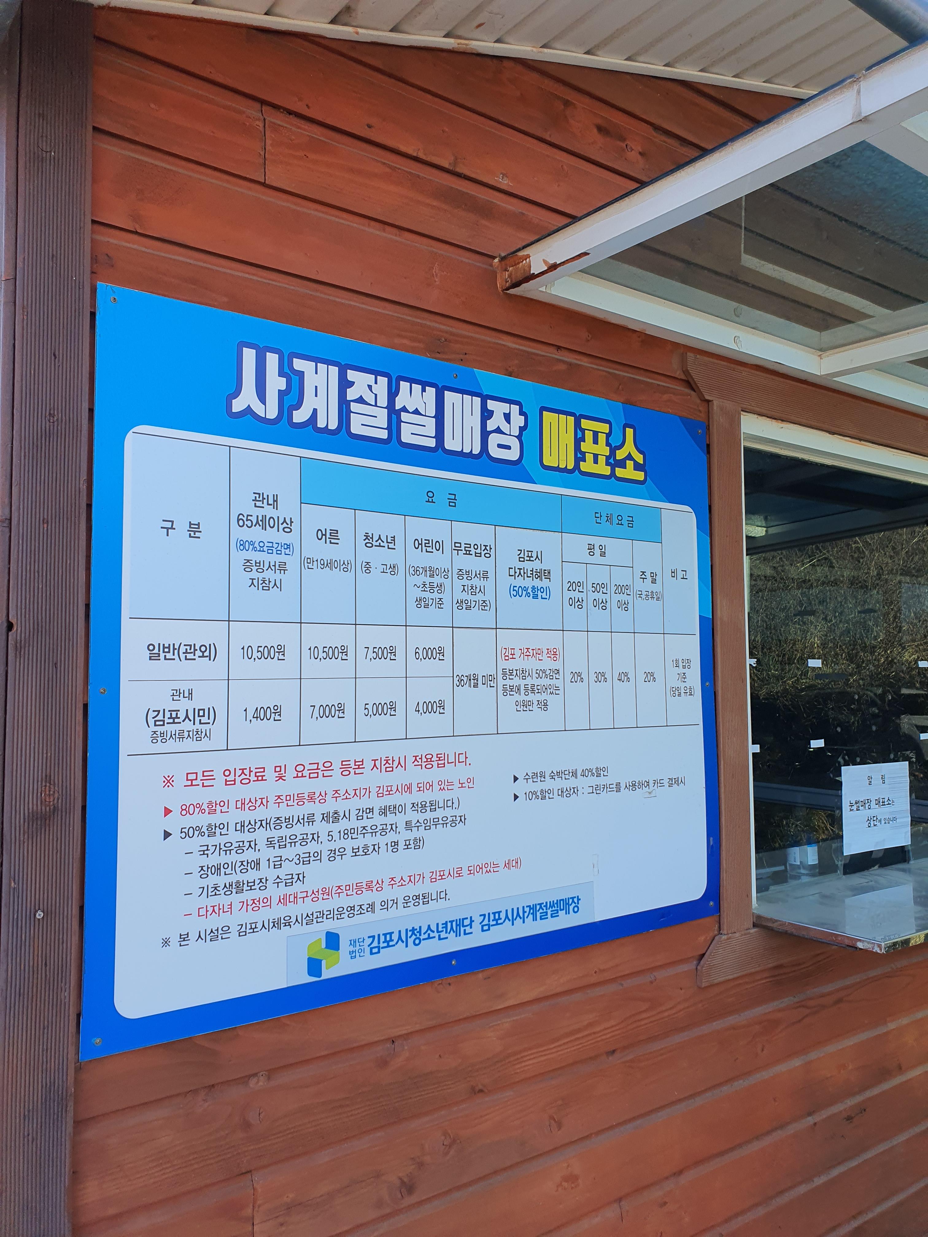 어른 10,500원 / 김포시민 어른 7,000원