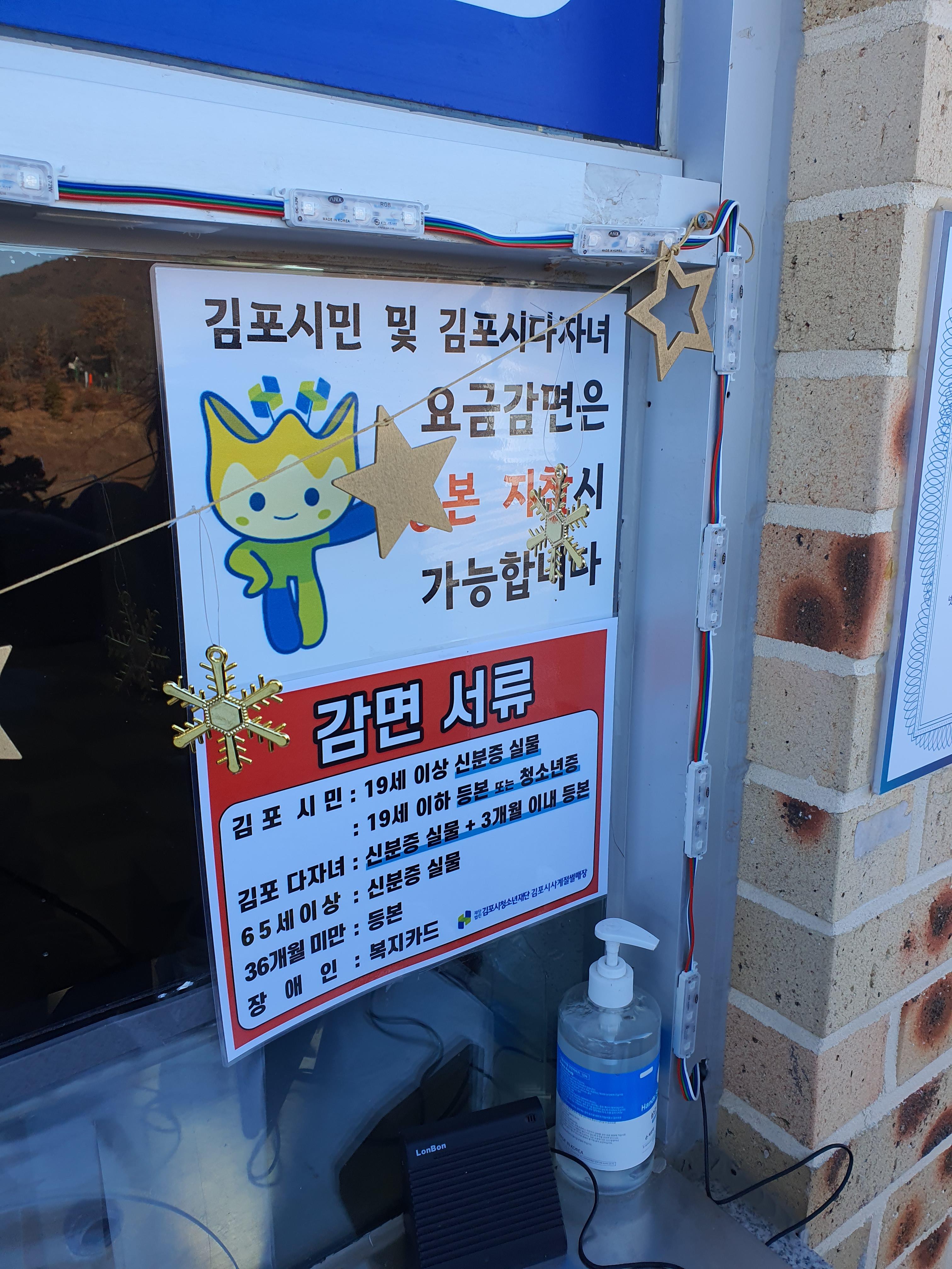 김포시민 및 김포시다자녀는 실물서류를 지참하시면