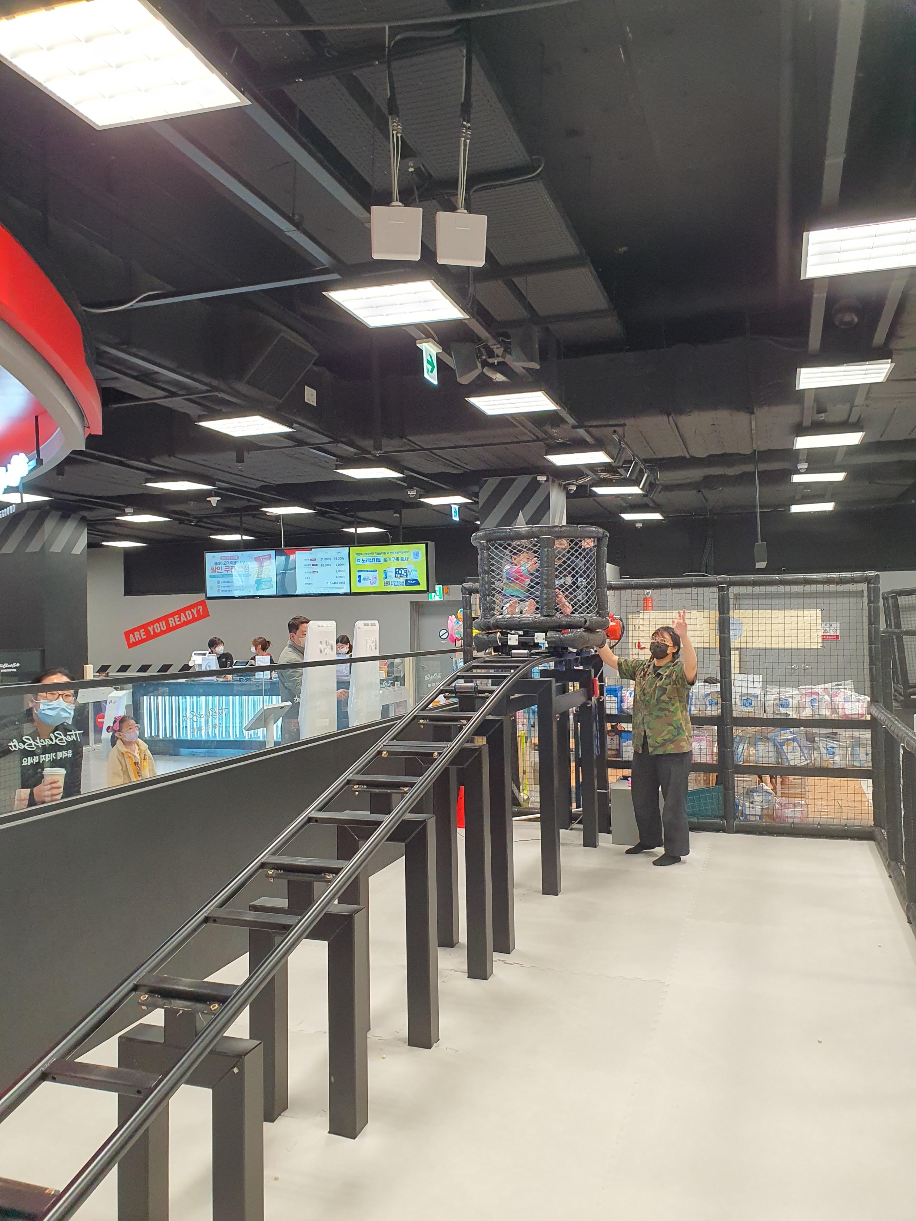 전동줄을 걸어서 저기까지 반자동으로 끌어올려야 하는 시스템이라