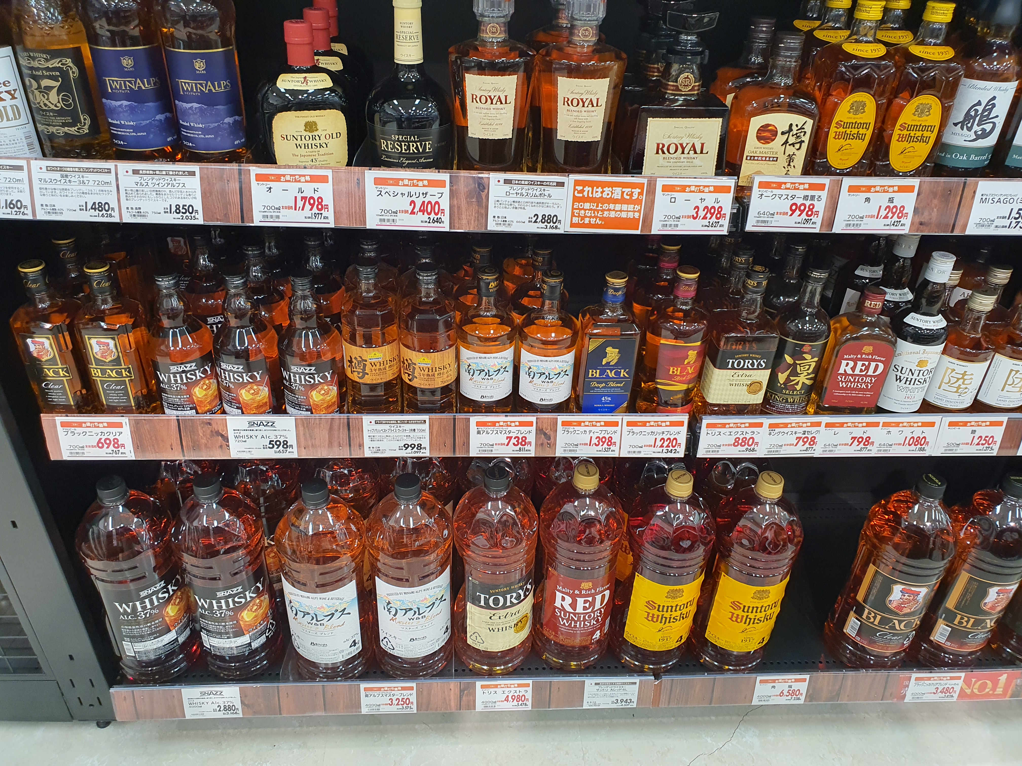 제일 아래 보시면 아까 산토리처럼 4리터 대용량 술병들이