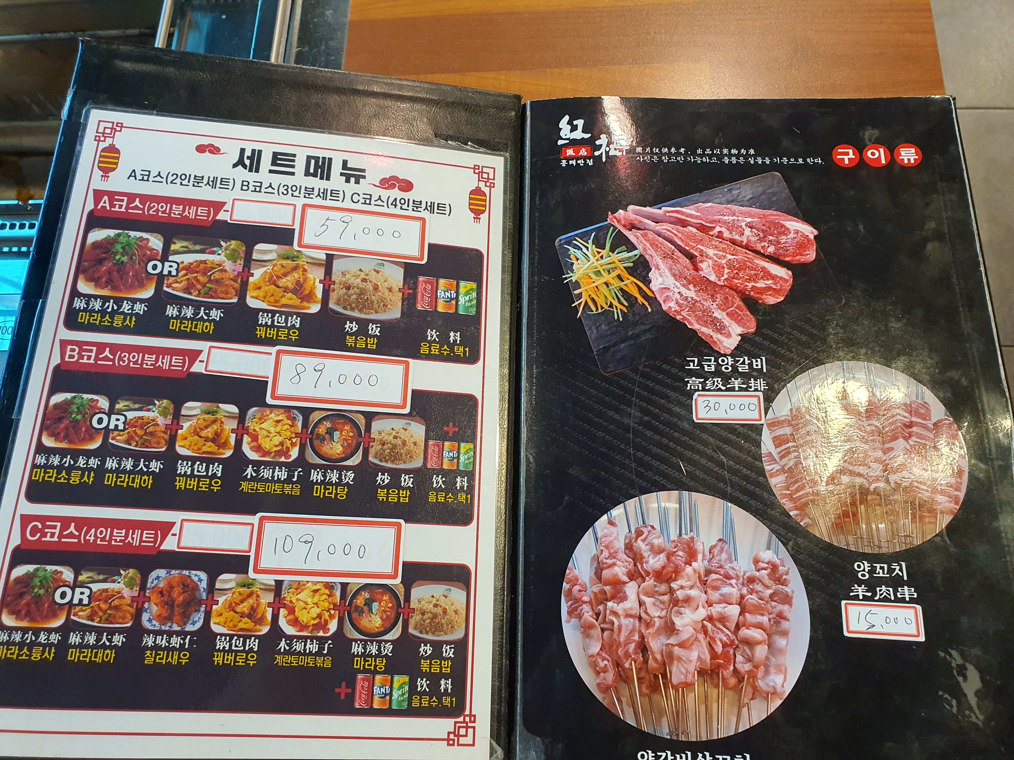 양꼬치도 물가반영을 따라 가격이 많이 오르긴 했네요.