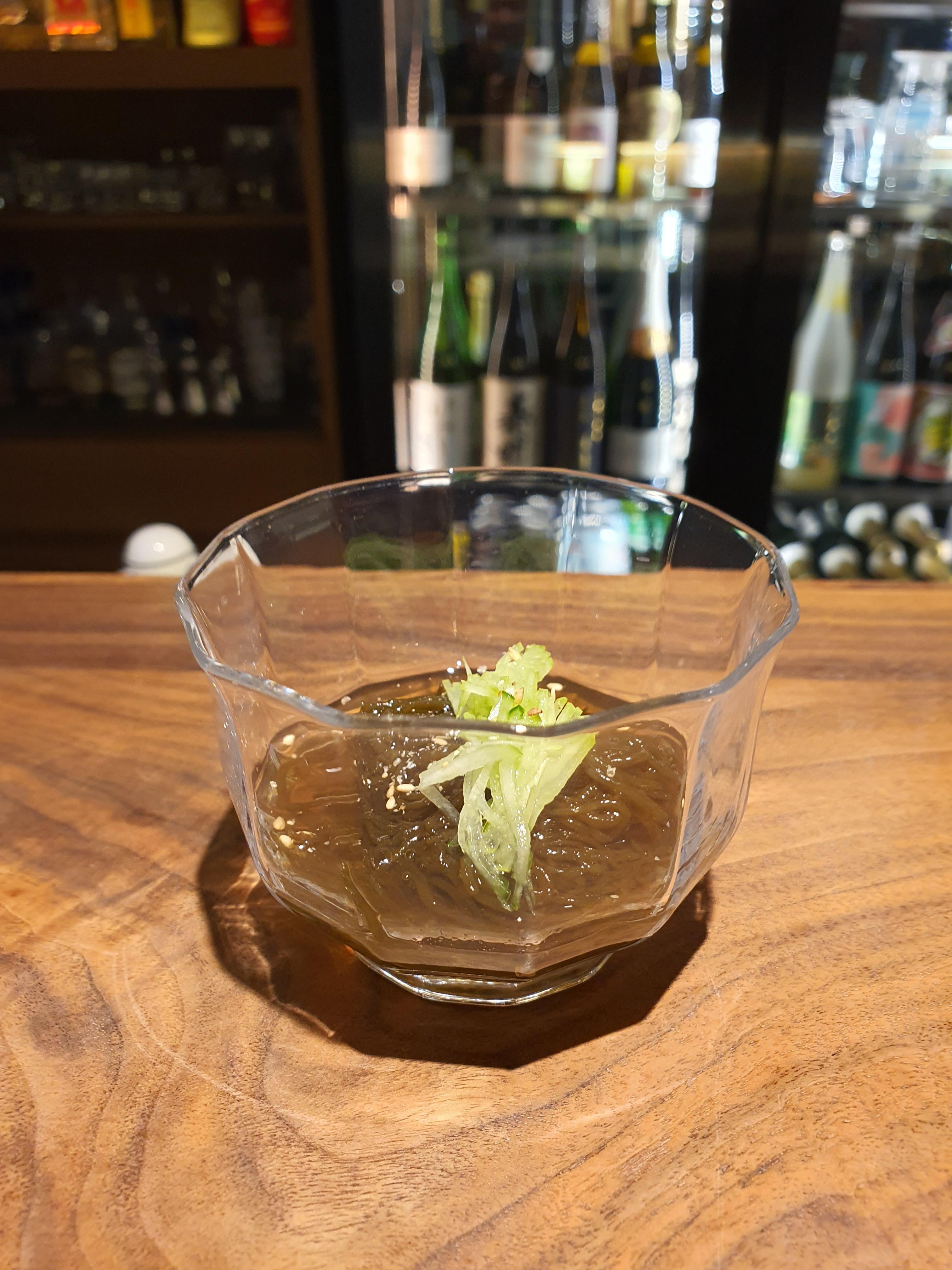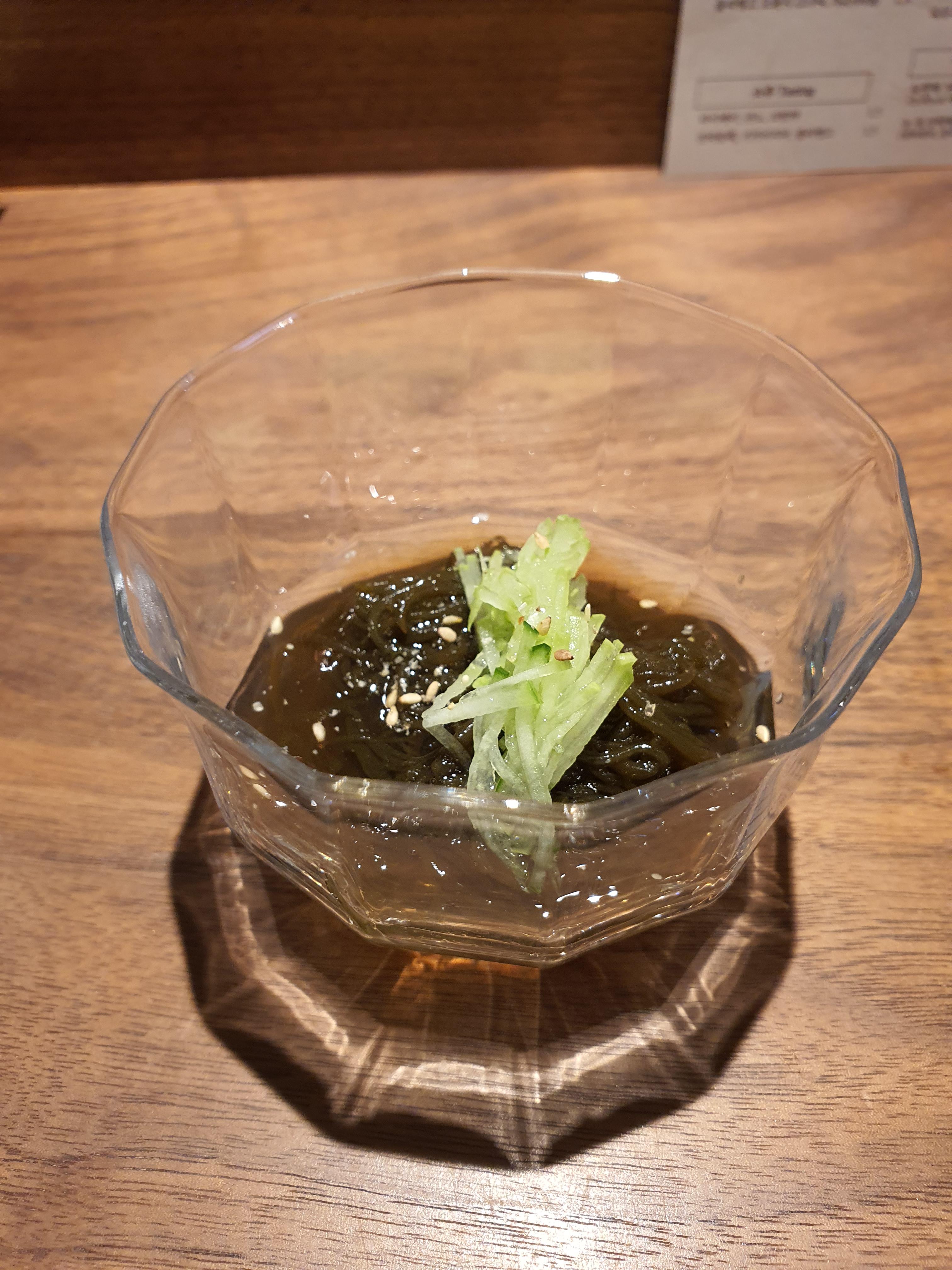 해초로 만든 면에 오이가 곁들어져 있어